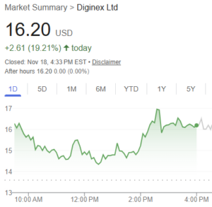 💥I first alerted Diginex Ltd (DGNX) on November 18, when it had a monster rally, surging nearly 33% intraday before closing here: