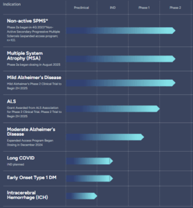 Those findings were reinforced when the company announced in June 2024 that “80% of the na-SPMS patients who received intranasal foralumab treatment for at least 6-months have a qualitative reduction of microglial activity” as confirmed in PET images.