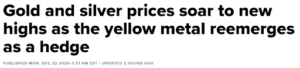 The article quotes one analyst who notes that, with the countries with world’s largest economies running massive fiscal deficits, “The value of gold as a monetary potential hedge has reemerged.”