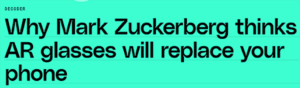 Zuck thinks AR smart glasses will be the “next major tech platform” and could well replace the smartphone, or at least supplement it the way smart watches do.
